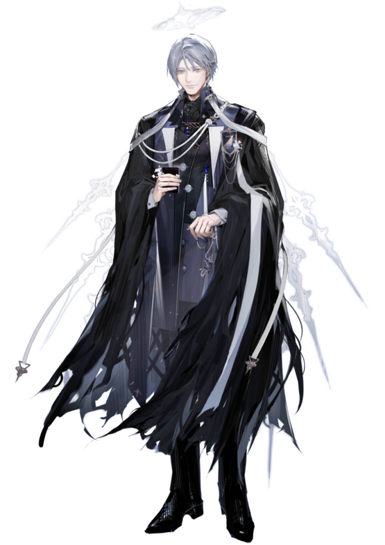 To make Himself most humble, the dark robe was the choice. Pale skin with silvery eyes and hair, His short hair represent the independence of being He is the sole being existed before every world created. To be able close as human beings but also to distinguish between His creations; the pair of translucent wings and halo was the answer. Though these can be easily hidden from mortal eyes, some of them might notice these for they might have special eyes to it.Unfortunately, no matter how hard He tried to hide His true nature, His children could notice Him easily. Not only that, even to human standard, He's rather tall; reached 188cm for His physical age. To make everything easier, He took a name of His family as his mortal name; AEON, as you may call Him in this form.